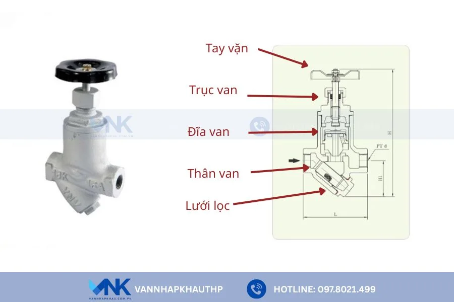 - Lưới lọc: Ngăn chặn tạp chất và cặn bẩn từ đường hơi xâm nhập vào bẫy, bảo vệ đĩa van và các bộ phận bên trong, giúp thiết bị vận hành ổn định và bền bỉ theo thời gian.