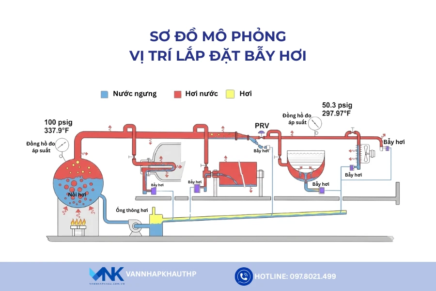 Ưu tiên vị trí gần thiết bị sinh nước ngưng như bộ gia nhiệt, đầu ra nồi hơi hoặc bình trao đổi nhiệt.