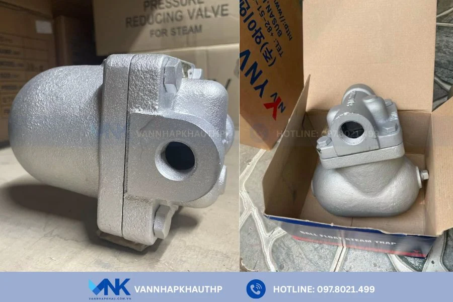 - Đầu vào và đầu ra: Đầu vào dẫn hơi nóng và nước ngưng vào khoang bẫy, đầu ra xả nước ngưng ra ngoài được thiết kế với kiểu nối ren hoặc mặt bích để đảm bảo độ kín khi lắp đặt