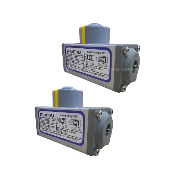 Bộ điều khiển khí nén HTD063 là thiết bị truyền động khí nén dạng tác động kép được dùng điều khiển quá trình đóng mở của van và có nguồn gốc xuất xứ từ thương hiệu nổi tiếng Haitima Đài Loan. Với cơ chế vận hành tự động hoàn toàn sử dụng khí nén ở cả hai chu trình đóng và mở, thời gian hoạt động nhanh, độ chính xác cao và an toàn.