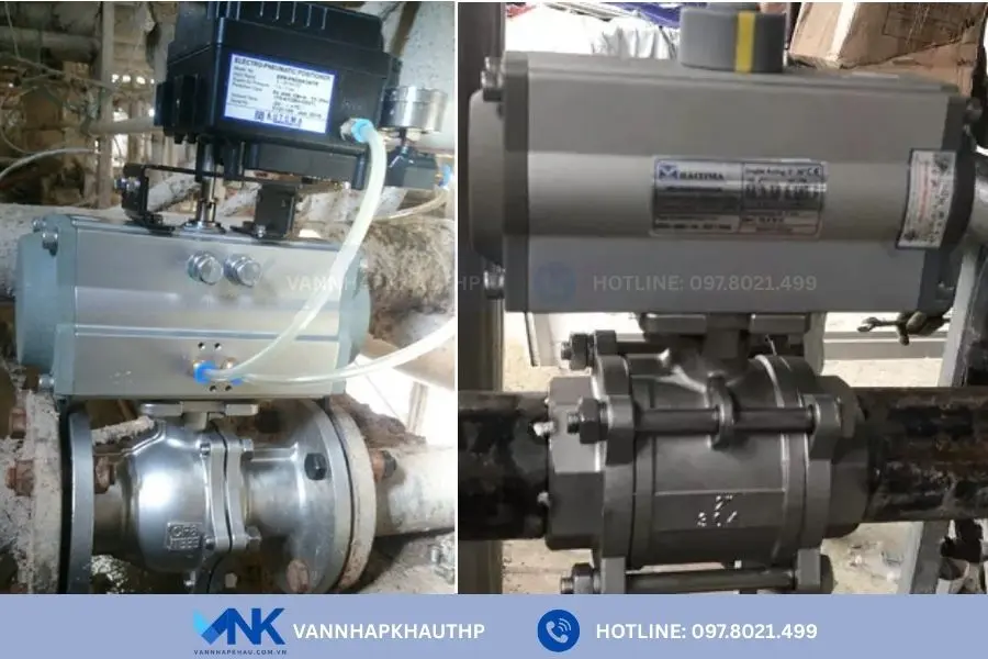- Trong ngành hóa chất có tính ăn mòn nhờ thân bộ khí nén bằng nhôm kết hợp thân van cơ bằng inox.