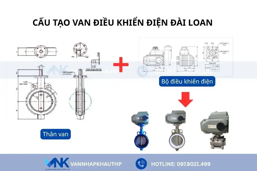 Trong Catalogue van điều khiển điện Đài Loan, phần cấu tạo thường được trình bày trực quan bằng các hình ảnh cắt lớp. Theo đó, thiết bị này sẽ gồm các bộ phận chính dưới đây: