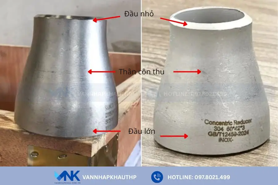 Chi tiết cấu tạo côn thu inox