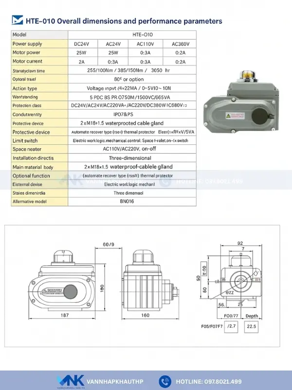 Động cơ điện HTE10 thường được sử dụng để lắp cho van bi cơ DN65 và van bướm cơ DN125 theo công thức: