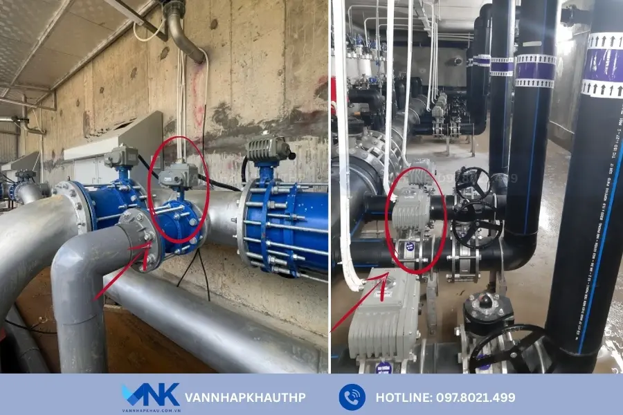 - Đối với hệ thống xử lý nước thải, HTE10 thường gắn trên van điều khiển tại bể xử lý, trạm bơm, giúp kiểm soát dòng chảy ổn định và vận hành từ xa.