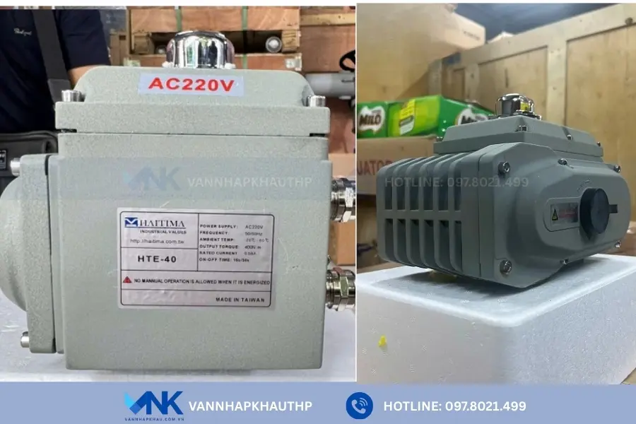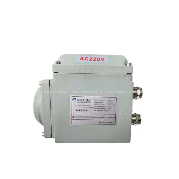 Động cơ điện HTE40 là model bộ truyền động điện cỡ lớn của thương hiệu nổi tiếng Haitima Đài Loan. Sản phẩm sở hữu lực momen xoắn cực lớn lên đến 400 Nm nên được lắp đặt chuyên dụng cho 2 loại van công nghiệp kích thước lớn là van bi DN125 và van bướm DN300, DN350. Chức năng chính được dùng để điều khiển tự động quá trình đóng mở hoàn toàn hoặc điều tiết dòng chảy lưu chất đảm bảo nhanh chóng, độ chính xác cao.