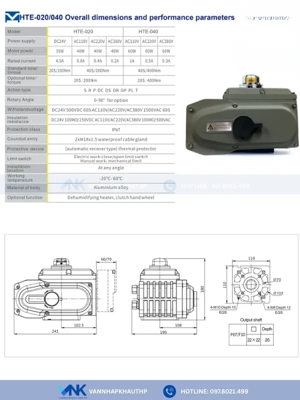 Nhờ lực momen xoắn mạnh, khả năng lắp đặt cho van công nghiệp cỡ lớn, động cơ điện HTE40 đặc biệt phù hợp cho các tuyến ống có kích thước lớn và áp lực làm việc cao. Cụ thể sau đây: