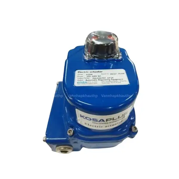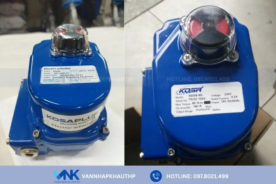 Động cơ điện KE006 là bộ truyền động điện được sản xuất bởi hãng Kosaplus hàng đầu Hàn Quốc. Với cơ chế điều khiển đóng mở hoàn toàn tự động khi được cấp nguồn điện áp phù hợp, không cần dùng sức người. Hiện nay, model này đang được lắp đặt kết hợp với 2 loại van cỡ vừa là van bi DN40 và van bướm DN80 cho phép tích hợp vào hệ thống trung tâm, tủ PLC để vận hành từ xa. Một số ứng dụng điển hình có thể kể đến như hệ thống cấp thoát nước sạch, xử lý nước thải, HVAC, PCCC, hơi nóng, khí nén…