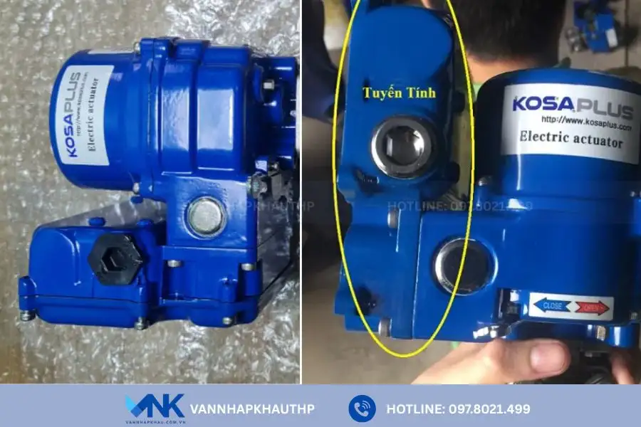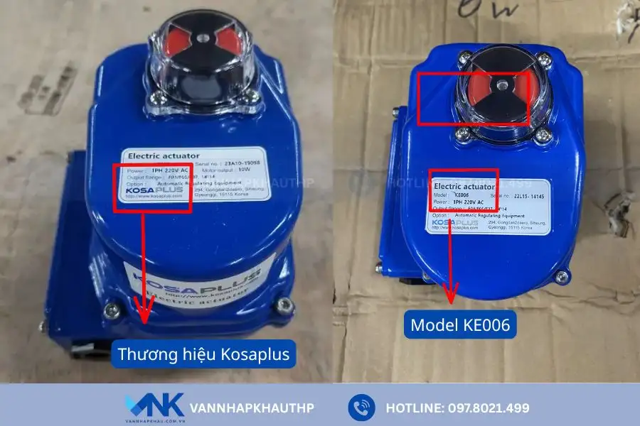 Đặc điểm nhận diện động cơ điện KE006 Kosaplus chính hãng rất đơn giản, thân bộ điện được làm bằng nhôm đúc nguyên khối, phủ Epoxy tĩnh điện màu xanh bên ngoài. Trên thân bộ điện có dán tem ghi đầy đủ thông số kỹ thuật như model, điện áp, series, thương hiệu, cảnh báo an toàn…Phần trên cùng bộ điện có bộ hiển thị hành trình CLOSE, OPEN. Kết cấu bộ điện KE006 cơ bản gồm: vỏ bộ điện, bảng mạch điện, motor điện, công tắc hiển thị, bánh răng, trục quay, bộ tuyến tính, tay quay.