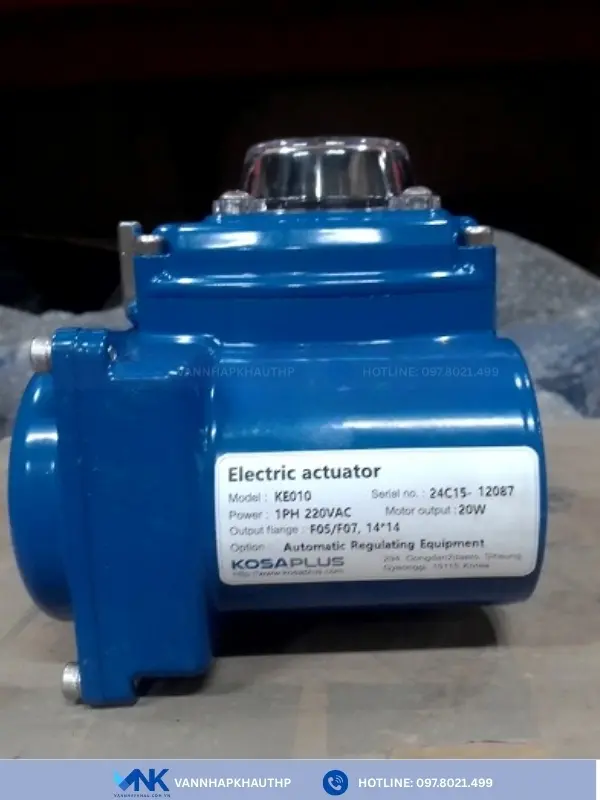 Động cơ điện KE010 hay còn gọi là bộ điều khiển điện KE010 là bộ truyền động điện điều khiển van hoàn toàn tự động đến từ thương hiệu Kosaplus – Hàn Quốc. Mã model KE010 tương đương với lực momen xoắn tối đa 100 Nm và được sản xuất để lắp đặt cho các loại van công nghiệp cỡ lớn như van bi DN65, van bướm DN125.