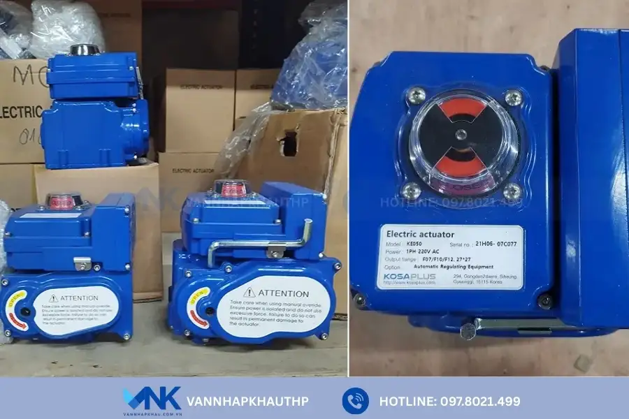 Động cơ điện KE50 là thiết bị truyền động điện công suất lớn, sở hữu lực momen xoắn lớn lên đến 500Nm và chuyên dùng cho các loại van công nghiệp kích thước lớn như van bướm DN300, van bi 150A. Với cơ chế vận hành tự động hoàn toàn khi được cấp nguồn điện áp phù hợp, giúp điều khiển van đóng mở chính xác, nhanh chóng và ổn định trong nhiều điều kiện môi trường khác nhau.