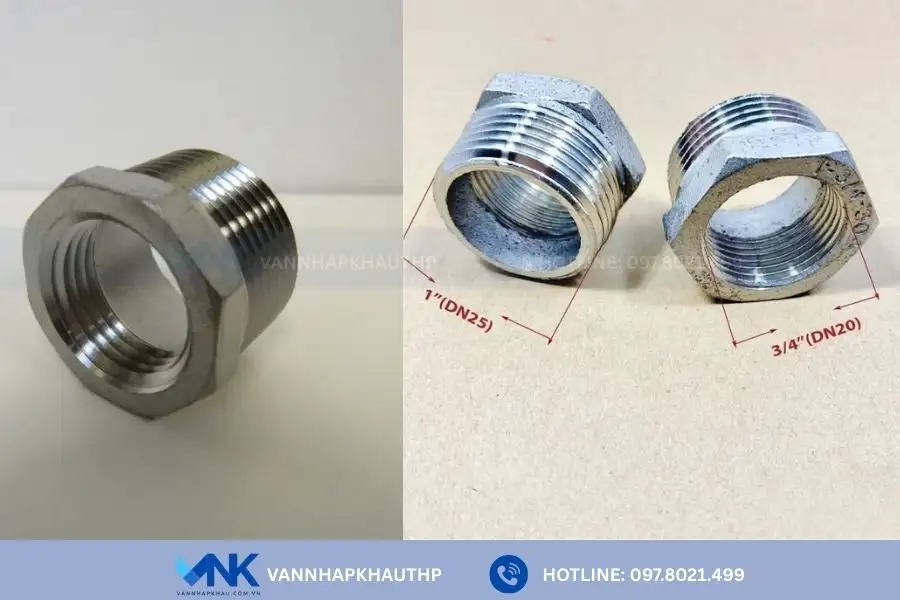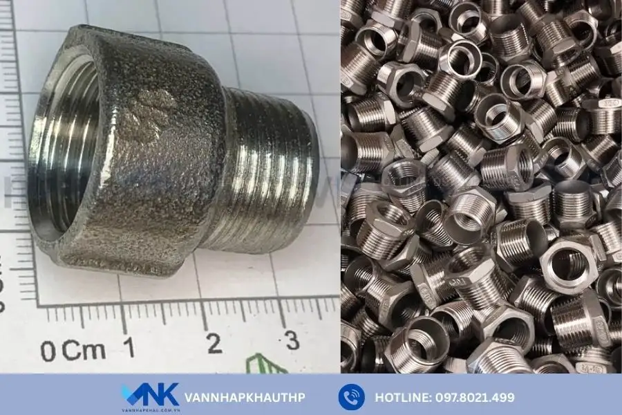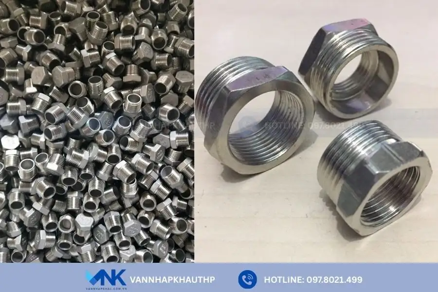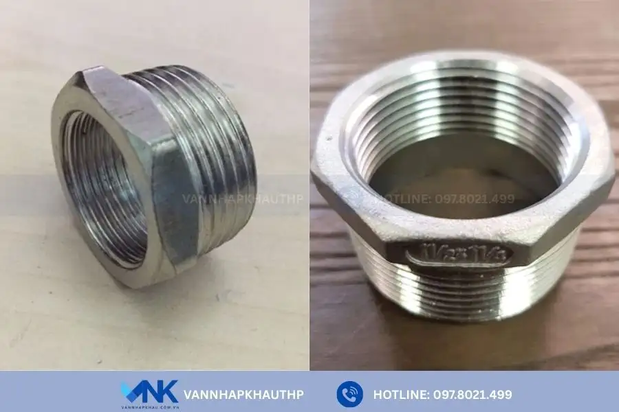 - Lơ thu inox: Là loại lơ có phần ren trong nhỏ hơn ren ngoài. Dòng lơ này chuyên dùng trong các hệ thống cần chuyển đổi kích thước đường ống, đặc biệt khi kết nối hai đầu ống hoặc thiết bị có đường kính khác nhau.