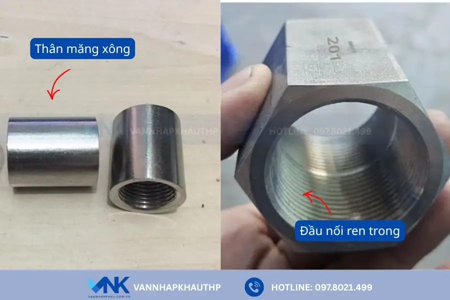 Nối măng xông inox nối ren