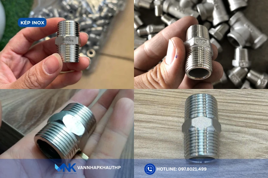 Kép inox có thiết kế đặc biệt sử dụng ren để nối nhanh các đoạn ống hoặc đường ống theo phương pháp lắp ren. Đặc điểm nhận biết hai đầu kết nối được tiện ren trong hoặc ren ngoài và có loại kép đều, kép lệch.