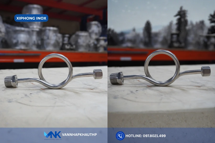 Xi phông inox là phụ kiện chuyên dùng để kết nối đường ống với thiết bị đồng hồ đo áp suất. Mục đích giúp làm giảm áp lực, bảo vệ đồng hồ nhất là trong môi trường hơi nóng.