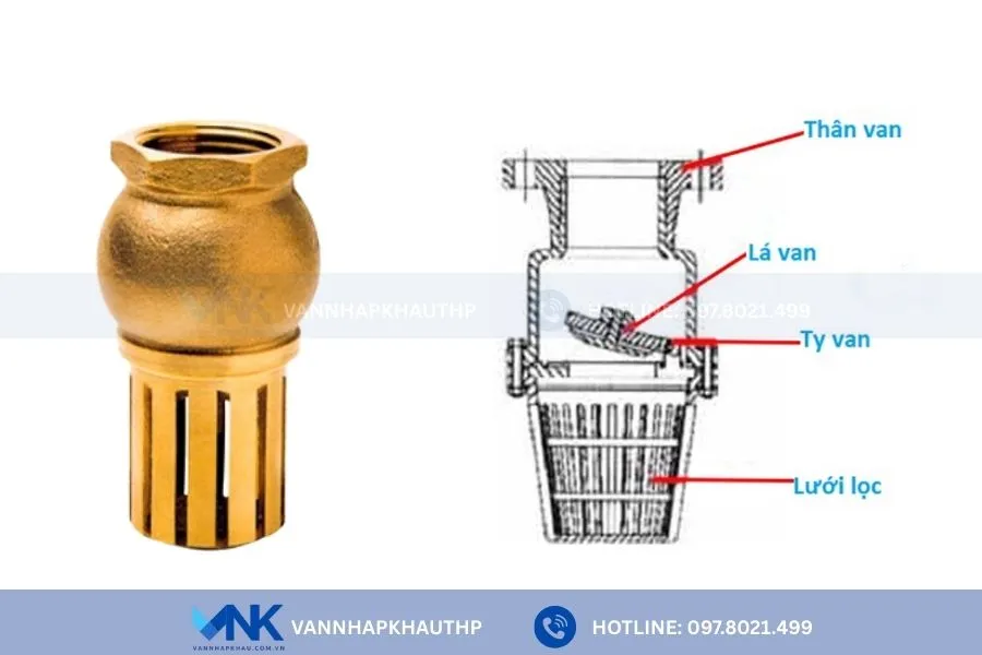 Về cấu tạo, rọ bơm đồng được thiết kế gồm các bộ phận chính như sau: