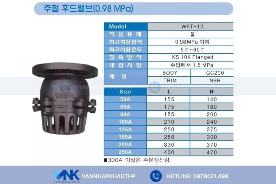 | Chất liệu thân | Gang đúc FC, inox 304 |