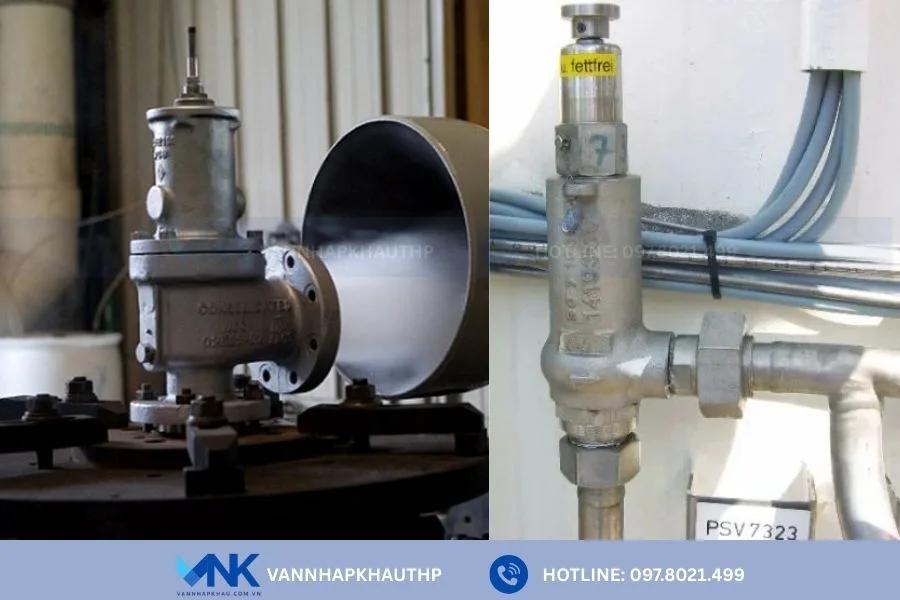 - Hệ thống nồi hơi, lò hơi công nghiệp, bình tích áp, đường ống dẫn hơi nước nhằm xả áp kịp thời khi áp suất vượt mức cho phép, đảm bảo an toàn cho hệ thống.