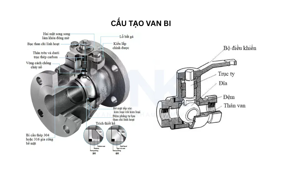 Dưới đây bao gồm các bộ phận chính tạo nên van bi: