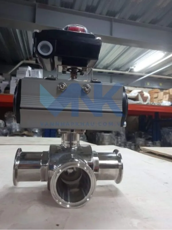 Van bi inox vi sinh điều khiển khí nén sử dụng bộ điều khiển khí nén để đóng mở van và có thể hoạt động ở 2 chế độ: tác động đơn hoặc tác động kép. Ưu điểm thời gian đóng mở cực nhanh, chỉ vài giây cho 1 chu trình và độ an toàn trong môi trường cháy nổ cao hơn dạng điện. Đồng thời, sản phẩm còn dễ tích hợp vào hệ thống tự động hóa công nghiệp và phù hợp với nhiều môi trường lưu chất khác nhau.