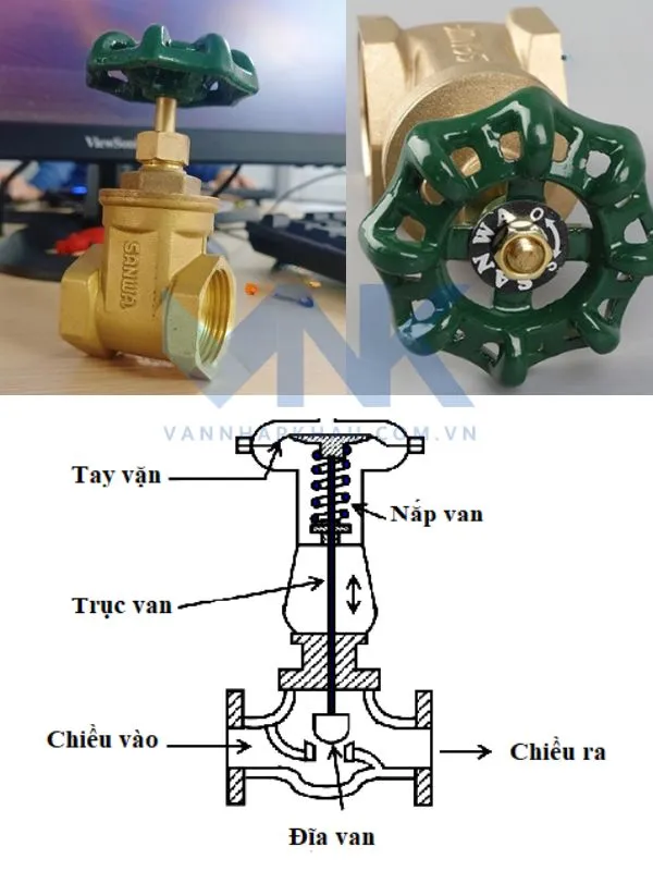 Van chặn đồng Sanwa được kết cấu đơn giản, nhỏ gọn, trọng lượng nhẹ bao gồm các chi tiết như sau: