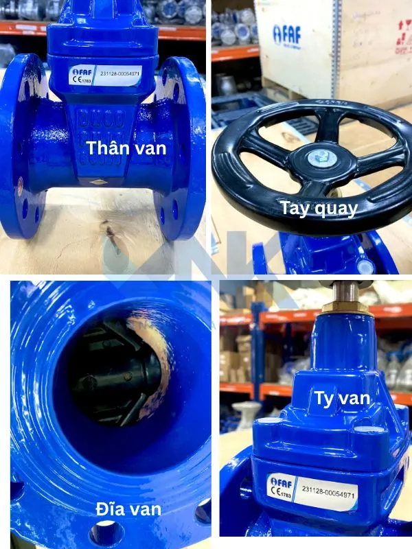 Về cấu tạo van cổng FAF model 6000 tương tự các dòng van cổng khác, điểm đặc biệt là ở phần ty chìm. Cụ thể như sau: