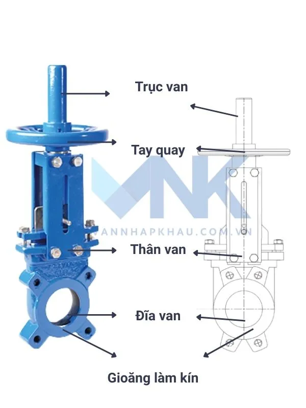 ✅ Đĩa van được làm bằng thép không gỉ, có dạng lưỡi dao sắc, mỏng, trơn nhẵn có thể cắt qua lưu chất dạng bùn, sệt hoặc chứa tạp chất.