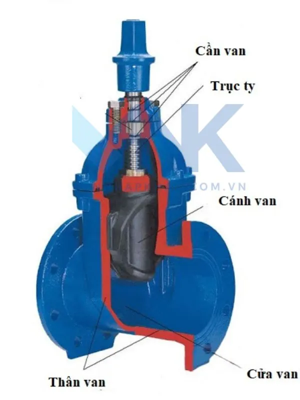 Chi tiết cấu tạo van cổng ty chìm nắp chụp