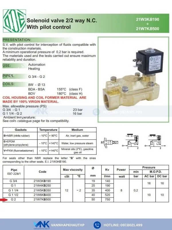 Catalog van điện từ đồng nối ren ODE Model 21W7KB500